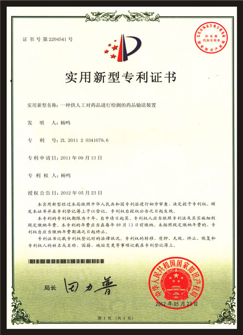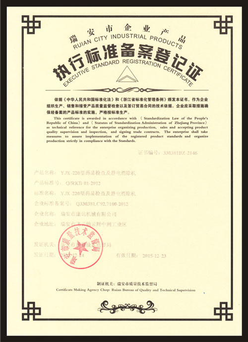 YJX-220型藥品檢查(靜電消除)機獲瑞安市科學(xué)技術(shù)進步獎